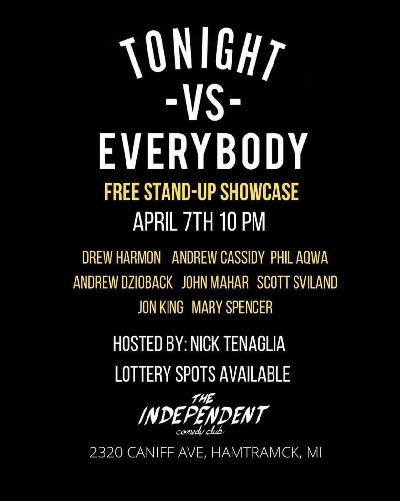 Posted on April 7, 2022 by drewmharmon This is tonight, I’m closing it out, come see me do my little skits Share this: Click to share on X (Opens in new window) X Click to share on Facebook (Opens in new window) Facebook Like Loading... Related